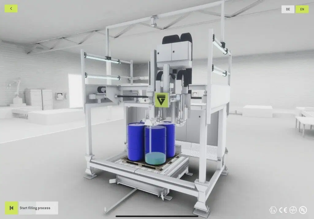 The solution is an interactive VR app for mobile devices that visualises the operational process of Greif-Velox’ two major packaging machines and their USPs, as well as the Greif-Velox Carbon Black, an interactive touchscreen VR app designed for guided use during exhibitions and customer meetings. The app brings the complete filling process to life, from material handling to sealing and palletising.