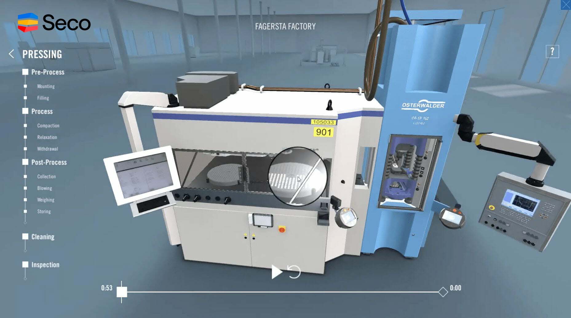 A VR Factory tour, in which the user can take a virtual tour of Seco's factory operations without having to travel all the way to their facility in Sweden.